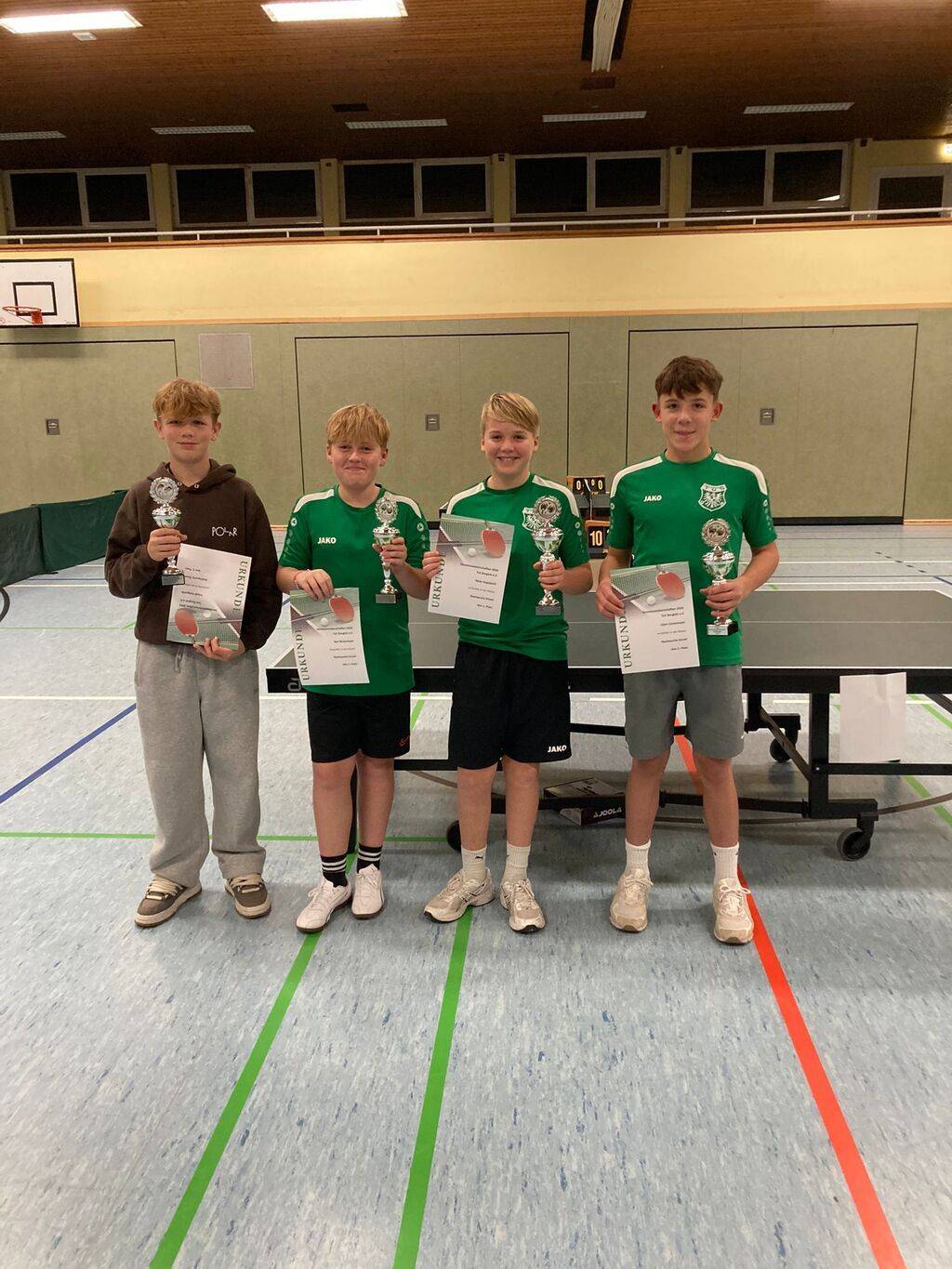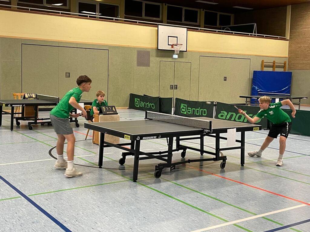 Zudem gab es am 16.11 ein Comeback vom TuS Borgloh bei den Bezirksindividualmeisterschaften in Hilter. Denn nach ungefähr einem Jahrzehnt Abstinenz konnte sich mit Henk Meyer mal wieder ein TuS Nachwuchsspieler für diesen hochklassig besetzen Wettbewerb qualifizieren. In der Altersklasse U11 duellierte sich Henk mit Konkurrenten aus dem gesamten Gebiet Weser-Ems und schied nur knapp als Gruppendritter in der Vorrunde aus. Im parallele stattfindenden Doppelwettbewerb konnte sich Henk mit seinem Doppelpartner Paul mit einem Sieg im Achtelfinale bis ins Viertelfinale durchspielen. Dort war dann gegen ein starkes Doppel Endstation. Trotz alledem gratulieren wir Henk zu diesem tollen Ergebnis.
